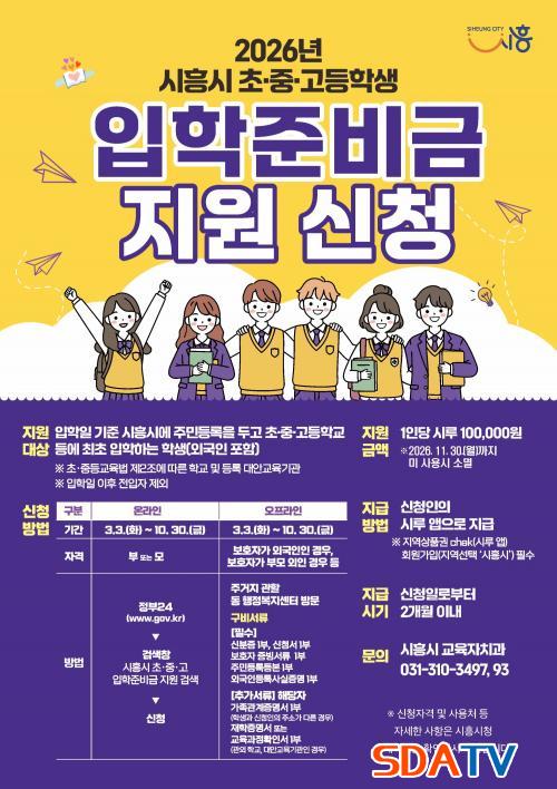 Áö¿ø ´ë»óÀº ÀÔÇÐÀÏ(3¿ù 3ÀÏ) ±âÁØ, ½ÃÈï½Ã¿¡ ÁÖ¼Ò¸¦ µÐ ÃÊÁß°í ½ÅÀÔ»ý 1¸¸ 6õ¿© ¸í(¿Ü±¹ÀÎ Æ÷ÇÔ)ÀÌ´Ù. ½Ã´Â À̵鿡°Ô 1Àδç 10¸¸ ¿ø¾¿ ½ÃÈï Áö¿ªÈÆó ¸ð¹ÙÀÏ ¡®½Ã·ç¡¯·Î Áö±ÞÇÑ´Ù.