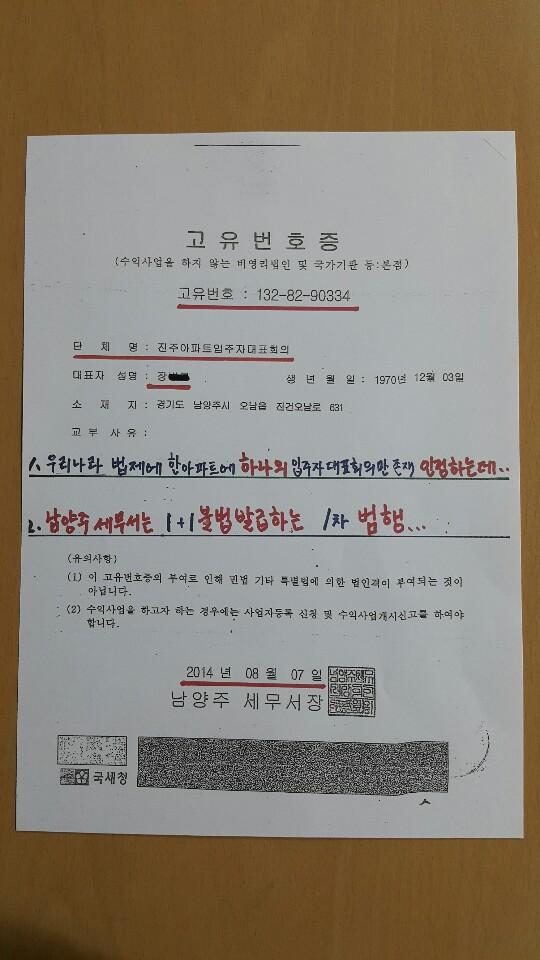 ÇØ´ç ¾ÆÆÄÆ®ÀÇ ¼±·®ÇÑ ´Ù¼ö Áֹε鿡 ÀÇÇϸé, ¡°´ç½Ã ÀÌ ¾ÆÆÄÆ®ÀÇ µ¿ ´ëÇ¥´Â Ⱦ·É»ç°ÇÀ¸·Î ±¸¼ÓµÇ°í 2013³â ´Ù¼ö Áֹε鿡 ÀÇÇØ ¡®¾Èµµ¼± ¾¾¡¯°¡ µ¿ ´ëÇ¥·Î ¼±ÃâµÆ´Ù. ±×´Â ÇØ´ç ¼¼¹«¼·ÎºÎÅÍ 1328000288ÀÇ °íÀ¯¹øÈ£¸¦ ¹ß±Þ ¹Þ¾ÒÀ¸¸ç °íÀ¯¹øÈ£Áõ¿¡ ´ëÇ¥·Î ±âÀçµÆ´Ù.
