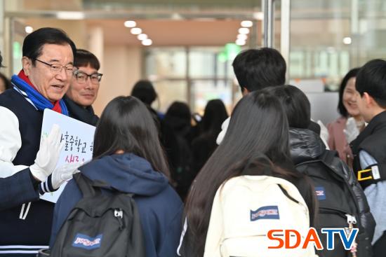 À̳¯ Çб³ Á¤¹®¿¡´Â ÀÌÇöÀç ½ÃÀåÀ» ºñ·ÔÇØ ½É»ó¿õ ±¤ÁÖÇϳ²±³À°Áö¿øÃ» ±³À°Àå, Á¶ÀÍ»ó ÇÑȦÁßÇб³ ±³Àå µî °ü°èÀÚµéÀÌ ÇÔ²² ¸ð¿© ÁßÇлýÀ¸·Î¼ ù¹ßÀ» ³»µó´Â ¾ÆÀ̵éÀ» ÀÀ¿øÇÏ´Â ¡®ÀÔÇлý µî±³¸ÂÀÌ È¯¿µ Çà»ç¡¯¸¦ ÁøÇàÇß´Ù.
